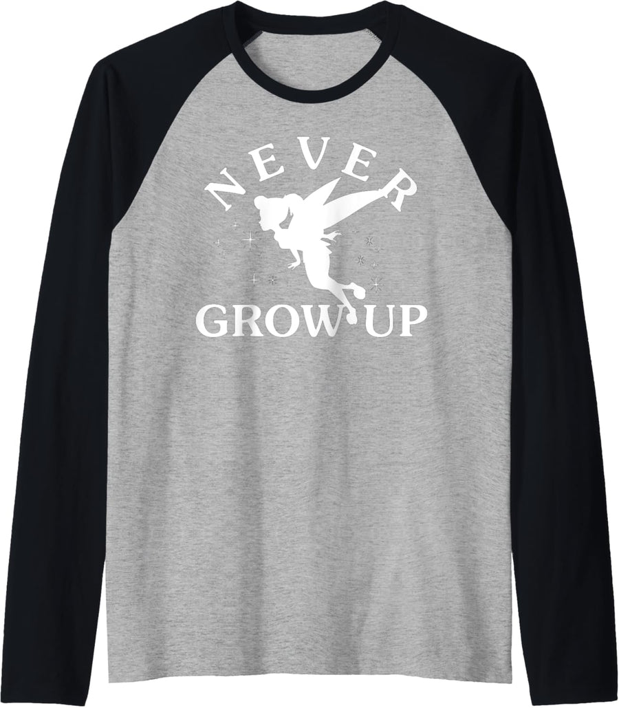 Disney Peter Pan Tinkerbell Never Grow Up Silhouette Raglan