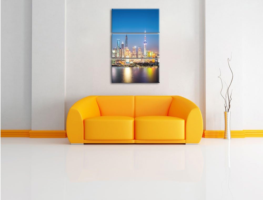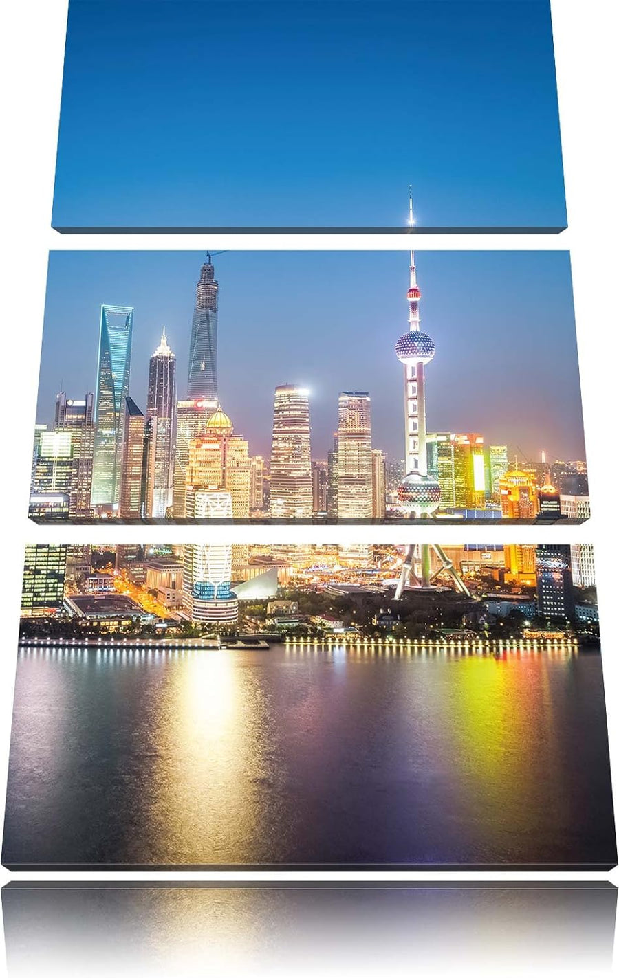 Pixxprint Shanghai Skyline als Leinwandbild/Grösse: 3 Teilig (120x80 cm) cm/Wandbild/Kunstdruck/fert