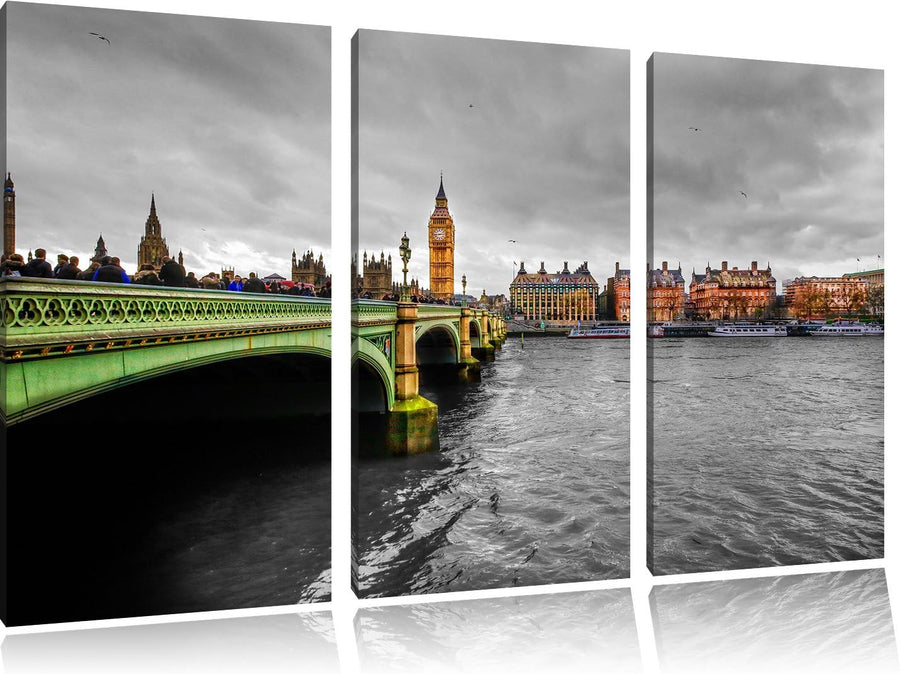 Pixxprint Skyline von London mit Themse und Big Ben schwarz/weiss 3-Teiler Leinwandbild 120x80 Bild