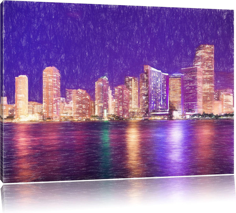 Pixxprint Skyline von Miami Florida als Leinwandbild/Grösse: 100x70 cm/Wandbild/Kunstdruck/fertig be