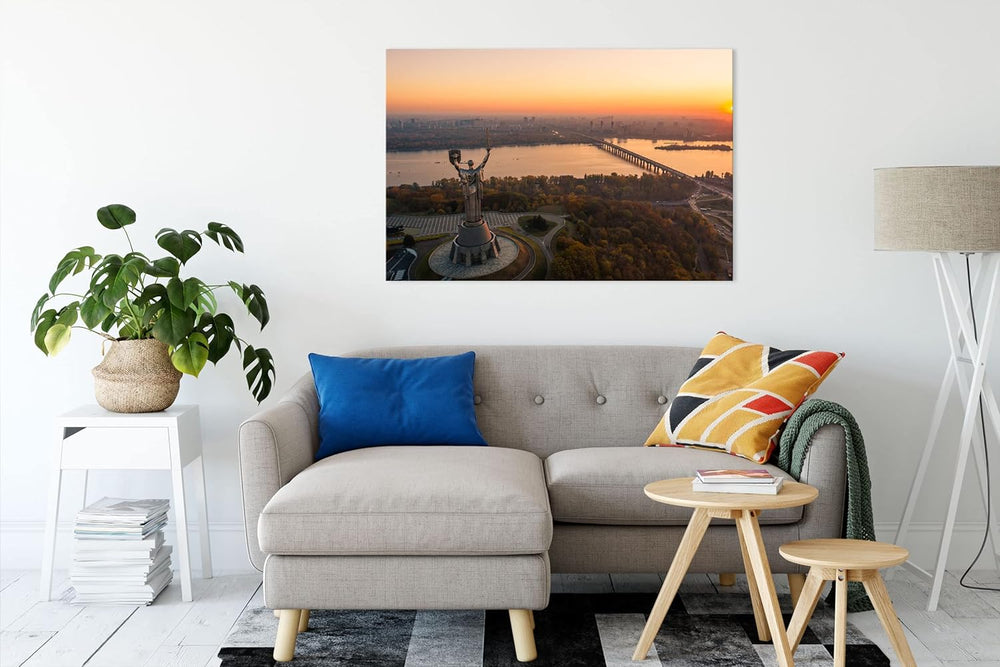Pixxprint Skyline Kiew Sonnenuntergang als Leinwandbild | Grösse: 100x70 cm | Wandbild | Kunstdruck