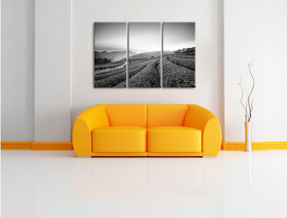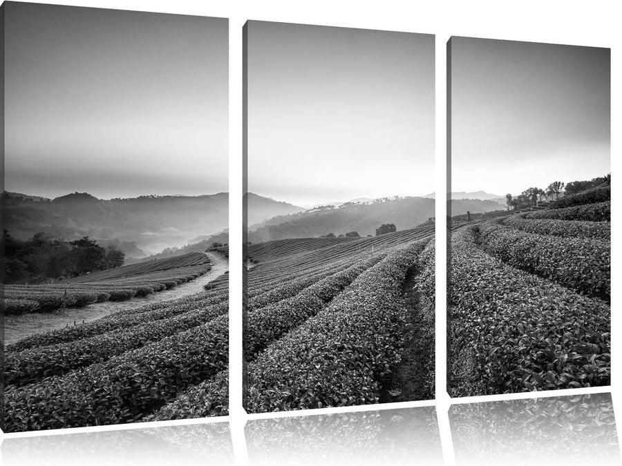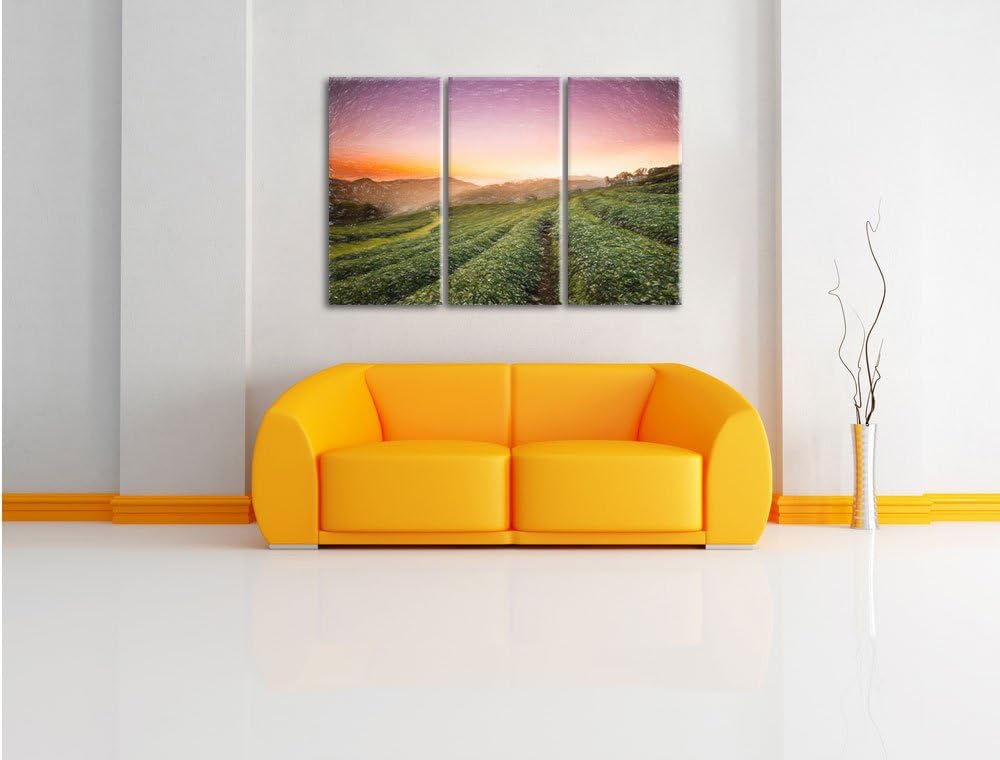 Pixxprint Sonnenaufgang Teeplantage Thailand / 3-Teilig/Gesamtmass 120cm Leinwandbild bespannt auf H