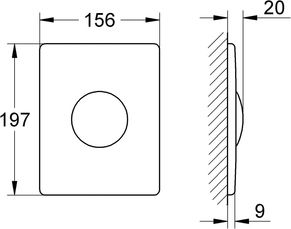 GROHE Skate - Edelstahl-Abdeckplatte (senkrechte Montage, 156 x 197 mm, Druckknopfbetätigung, verdec
