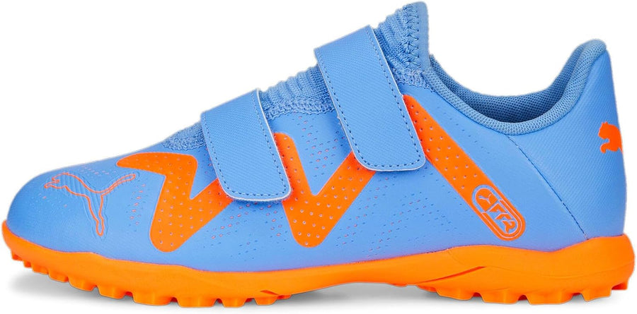 PUMA Unisex Future Play Tt V Jr Fussballschuh 38.5 EU Blue Glimmer Puma White Ultra Orange, 38.5 EU