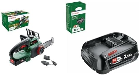 Bosch Akku Kettensäge Universalchain 18 (1 Akku, 18 Volt System, im Karton) & 18 Volt Ersatz Akku (2