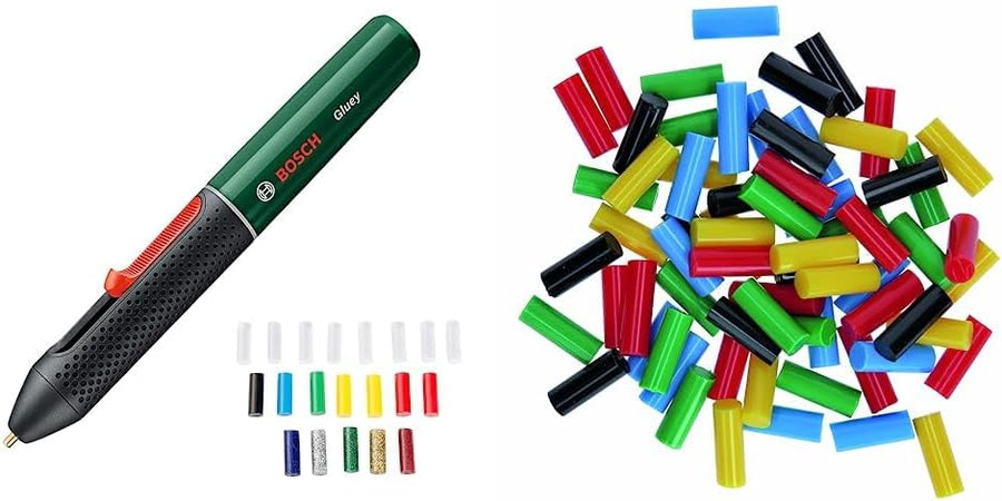 Bosch Akku Heissklebestift Gluey Evergreen dunkelgrün & 70tlg. Gluey Klebesticks