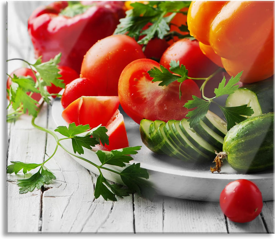 Gemüseteller Herdabdeckplatte & Spritzschutz aus Echtglas | Für Herd-Kochfelder | 60x52 cm