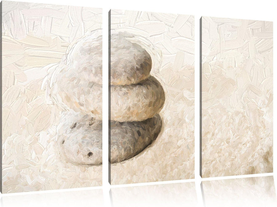 Pixxprint Steine in Sand mit Muster als Leinwandbild/Grösse: 3 Teilig (120x80) cm/Wandbild/Kunstdruc