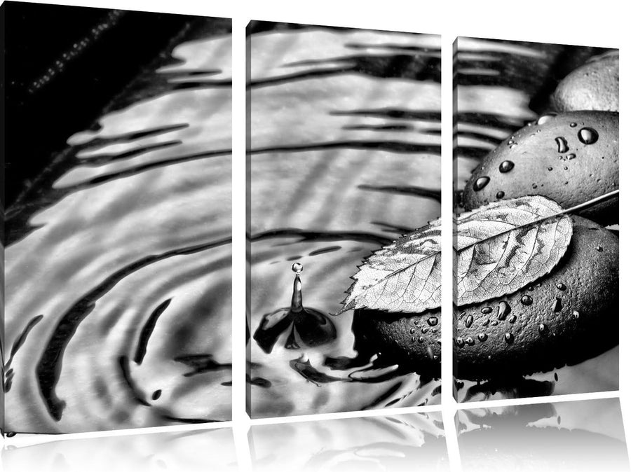 Pixxprint Stein mit Blatt als Leinwandbild/Grösse: 3 Teilig (120x80) cm/Wandbild/Kunstdruck/fertig b