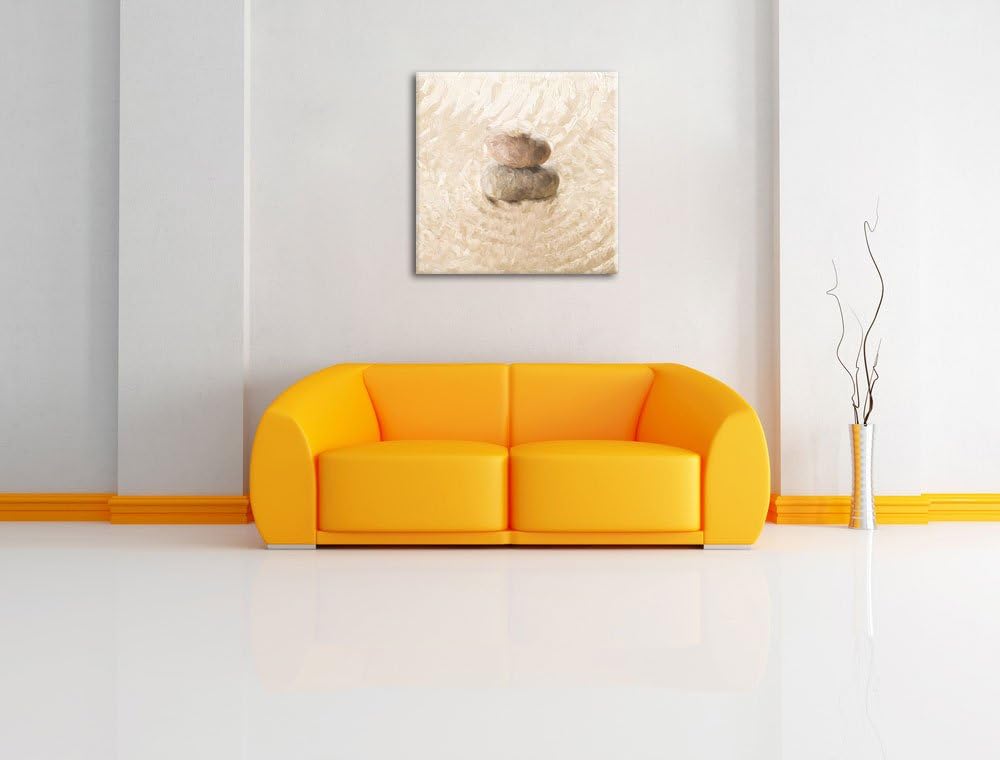 Pixxprint Steinturm auf Steinen als Leinwandbild/Grösse: 70x70 cm/Wandbild/Kunstdruck/fertig bespann