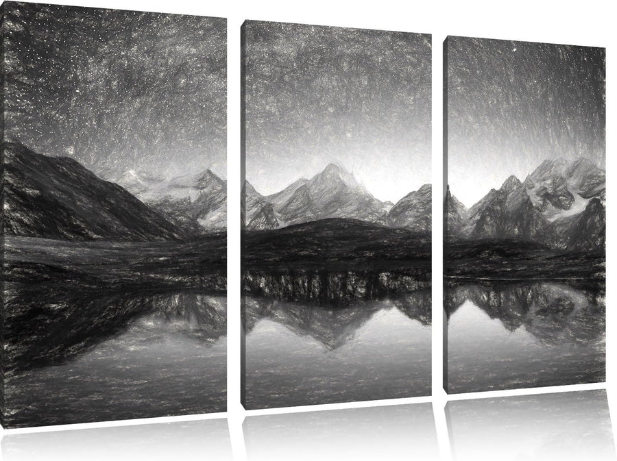 Pixxprint Sternenhimmel über dem Gebirge / 3-Teilig/Gesamtmass 120cm Leinwandbild bespannt auf Holzr