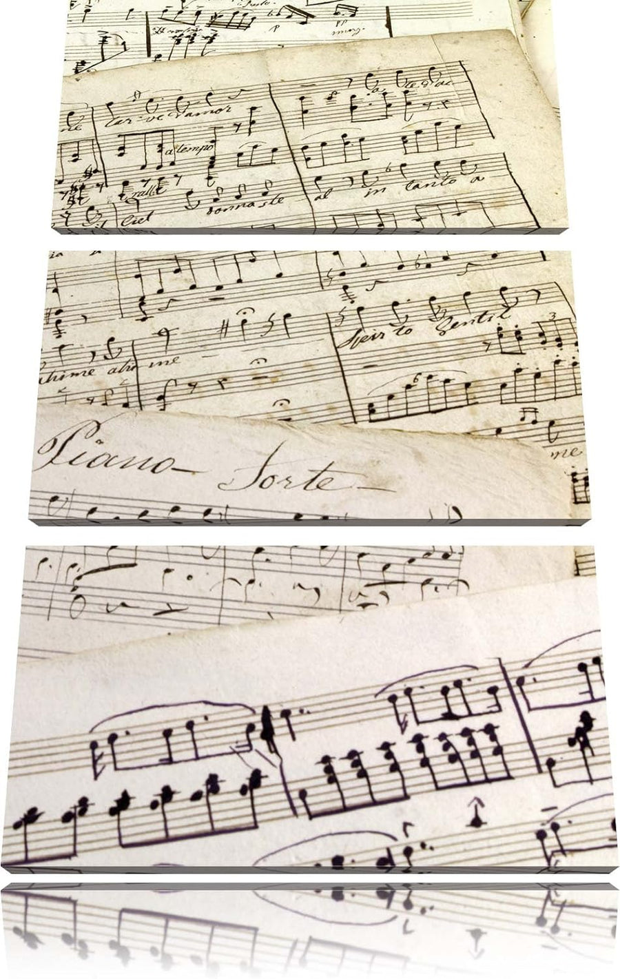 Pixxprint Stilvolle alte Notenblätter als Leinwandbild/Grösse: 3 Teilig (120x80 cm) cm/Wandbild/Kuns
