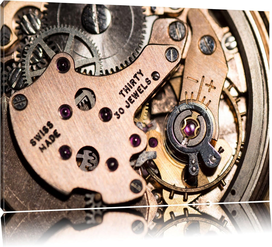 Pixxprint stilvolles Uhrenwerk auf Leinwand, XXL riesige Bilder fertig gerahmt mit Keilrahmen, Kunst