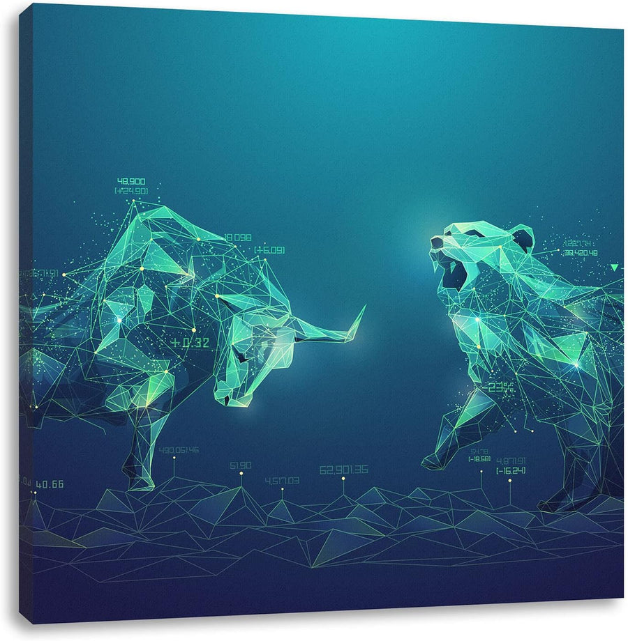 Pixxprint Stier vs. Bär – Börse Aktien als Leinwandbild Quadratisch| Grösse: 60x60 cm | Wandbild | K