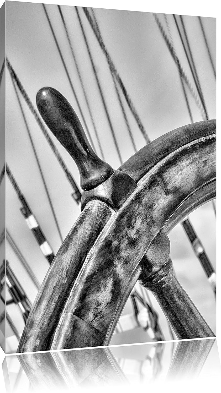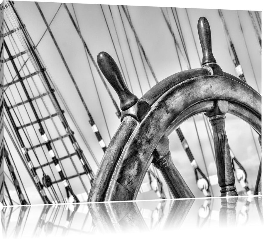 Pixxprint Steuerrad auf dem Schiff 100x70cm Leinwandbild Wandbild Kunstdruck, 100x70
