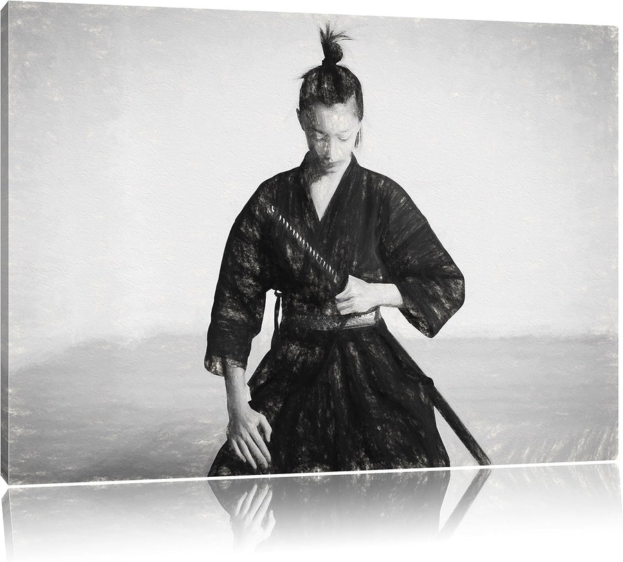 Pixxprint stolze Samurai-Kriegerin Kunst als Leinwandbild/Grösse: 100x70 cm/Wandbild/Kunstdruck/fert
