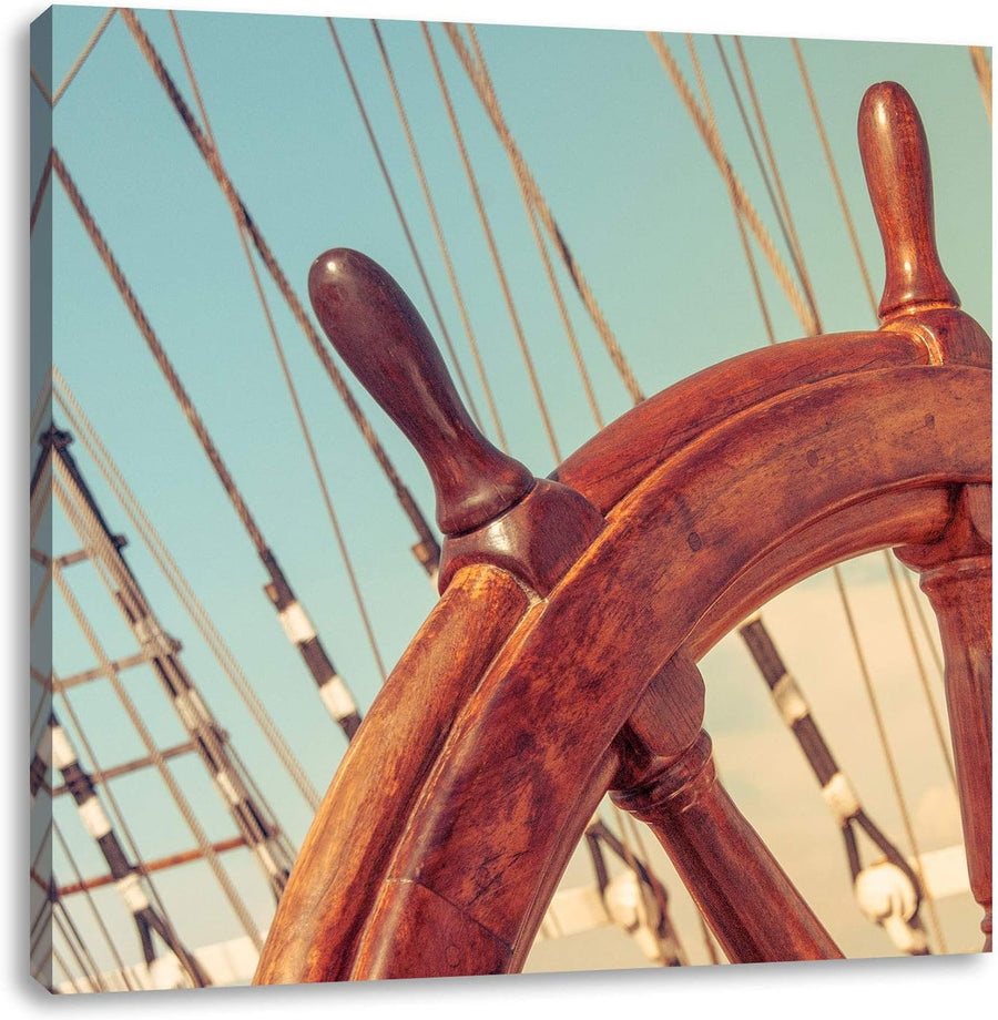 Pixxprint Steuerrad auf einem Schiff als Leinwandbild/Grösse: 70x70 cm/Wandbild/Kunstdruck/fertig be