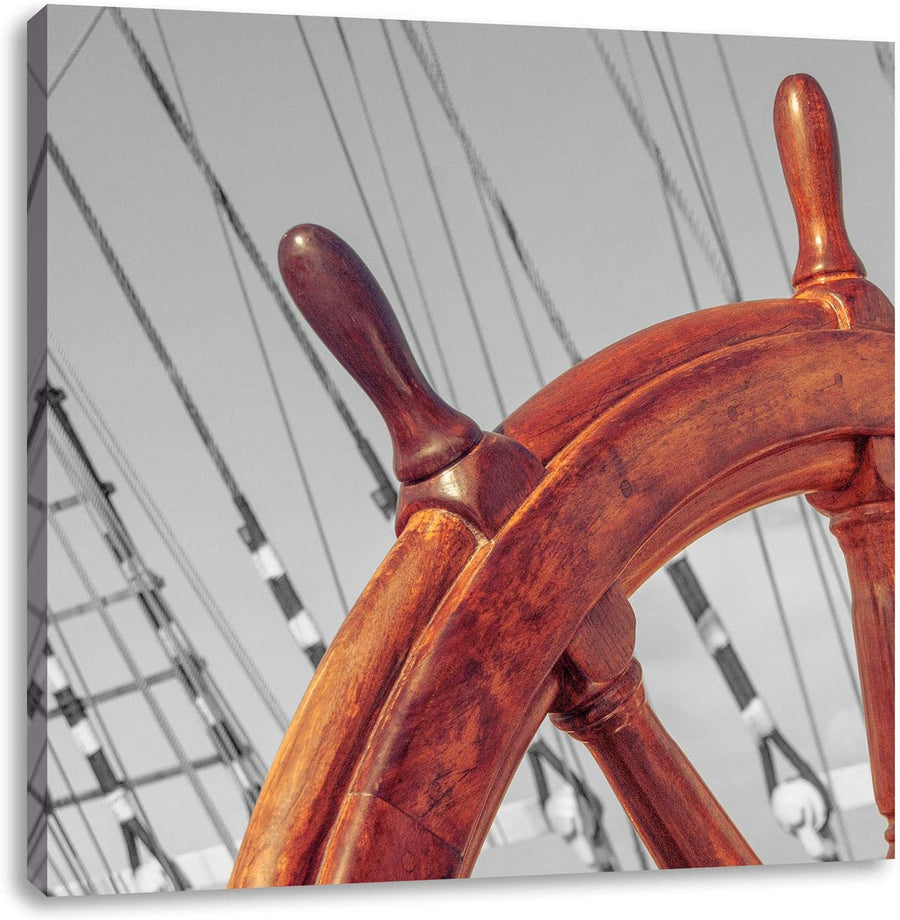 Pixxprint Steuerrad auf dem Schiff 70x70cm Leinwandbild Wandbild Kunstdruck, 70x70