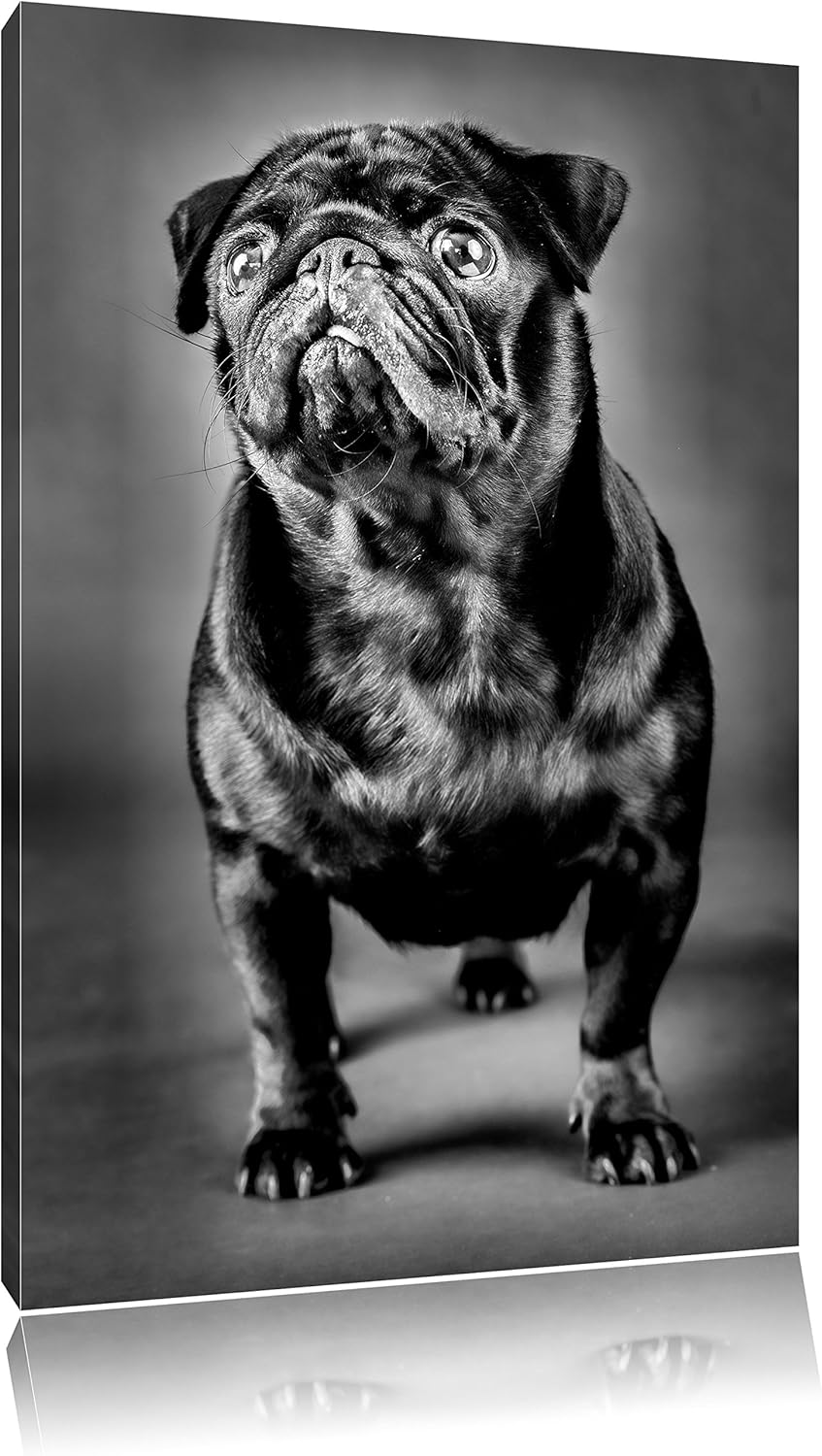 Pixxprint Süsser schwarzer Mops als Leinwandbild/Grösse: 100x70 cm/Wandbild/Kunstdruck/fertig bespan
