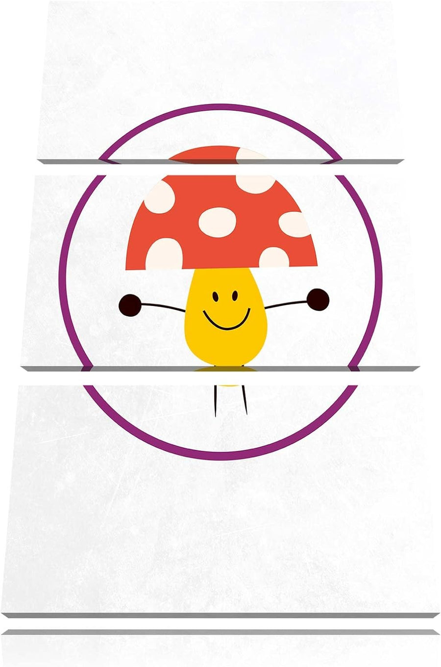 Pixxprint Süsser Pilz weiss 3-Teiler Leinwandbild 120x80 Bild auf Leinwand