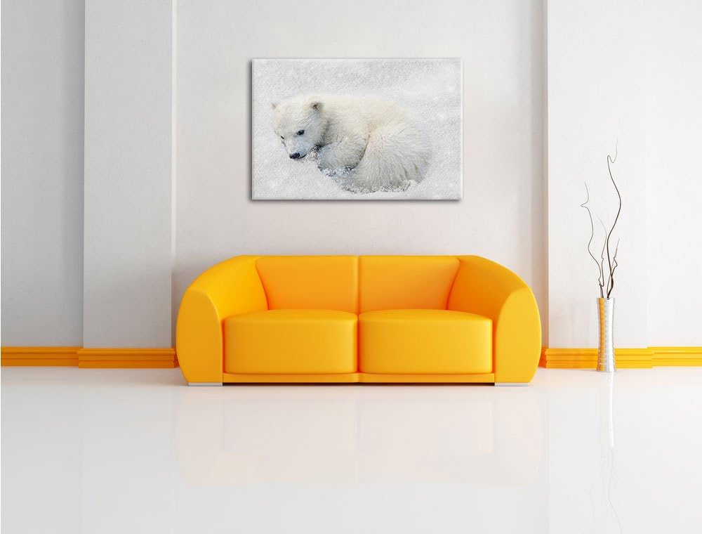 Pixxprint Süsser junger Eisbär im Schnee, Format: 100x70 auf Leinwand, 100x70