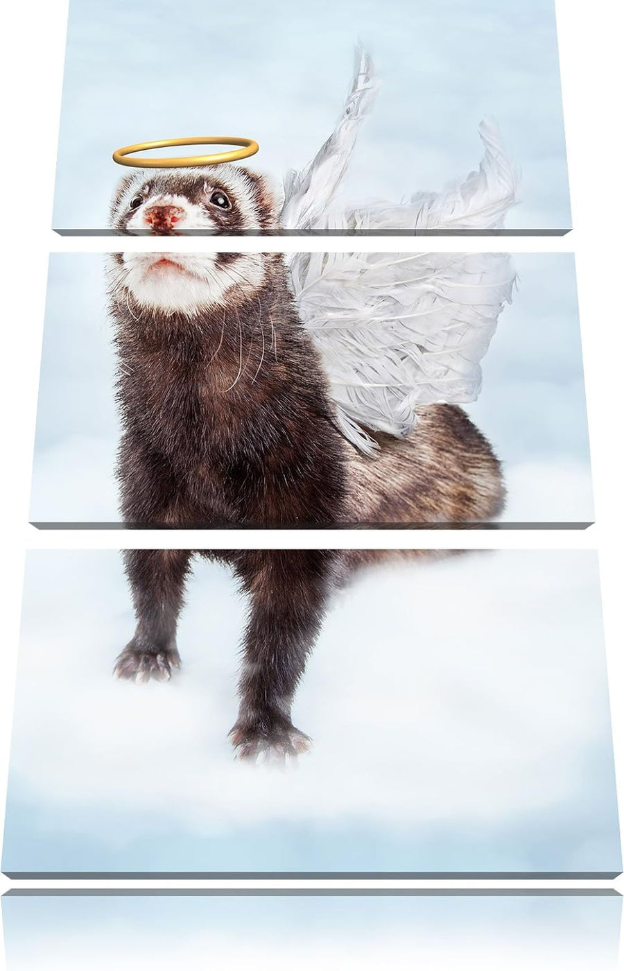 Pixxprint Süsses Frettchen im Engelsköstum / 3-Teilig/Gesamtmass 120cm Leinwandbild bespannt auf Hol