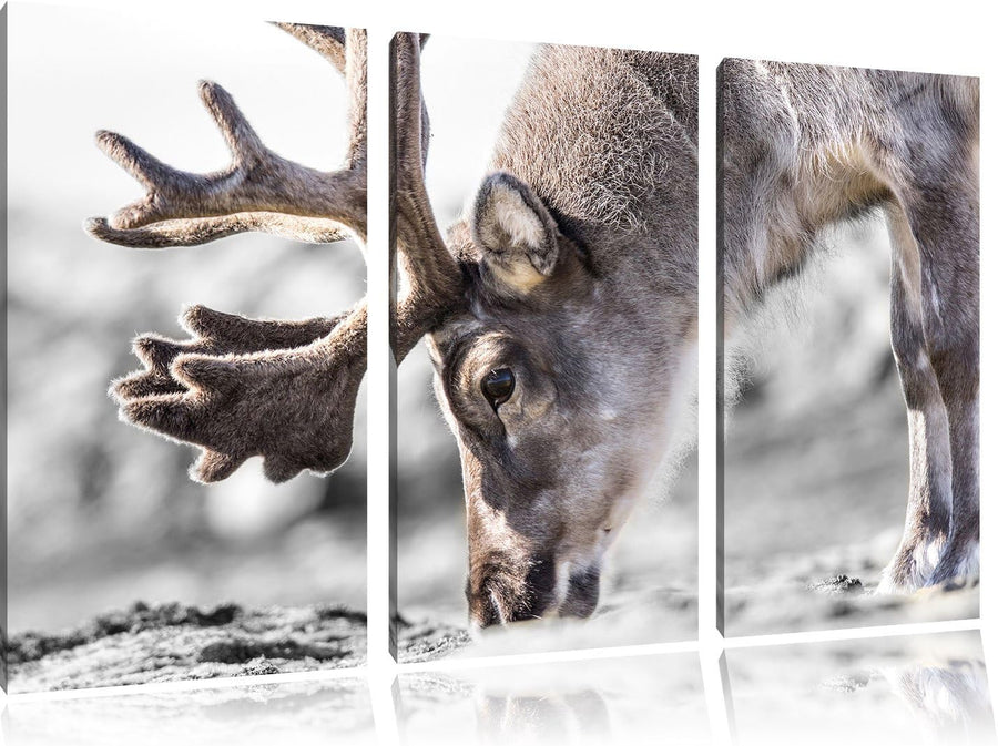 Pixxprint süsses Rentier beim Essen / 3-Teilig/Gesamtmass 120cm Leinwandbild bespannt auf Holzrahmen