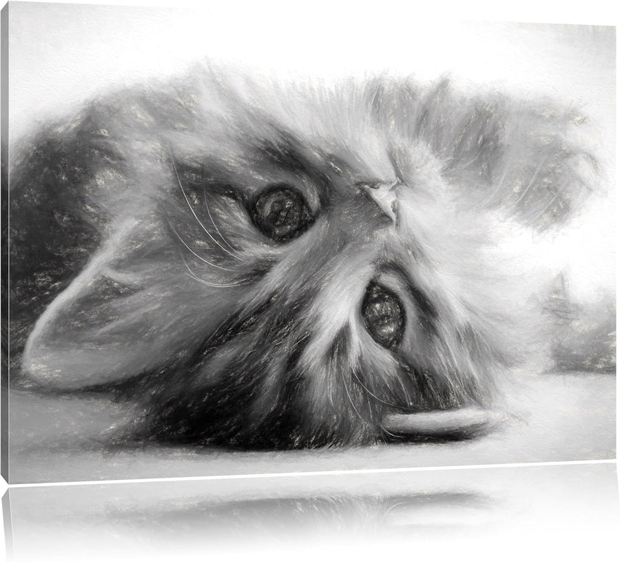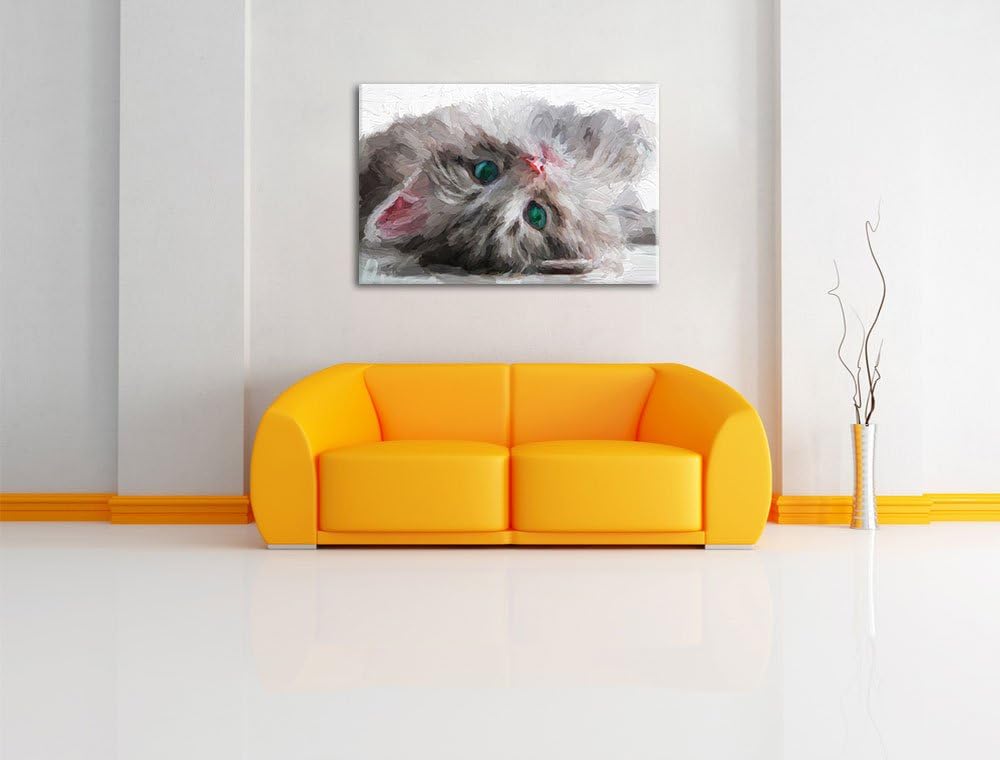 Pixxprint Süsses Katzenbaby als Leinwandbild/Grösse: 100x70 cm/Wandbild/Kunstdruck/fertig bespannt,