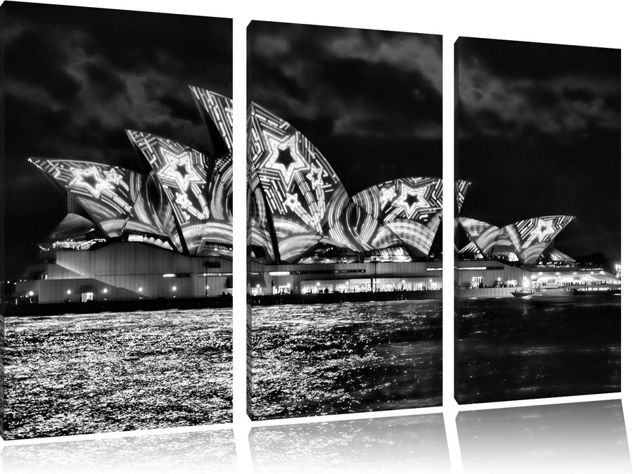 Pixxprint Sydney Opera House bei Nacht als Leinwandbild/Grösse: 3 Teilig (120x80) cm/Wandbild/Kunstd