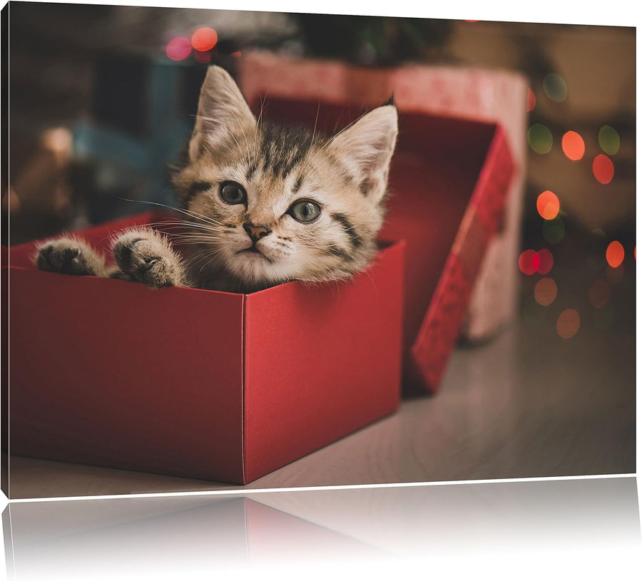 Pixxprint süsses Kätzchen in der Box als Leinwandbild/Grösse: 100x70 cm/Wandbild/Kunstdruck/fertig b