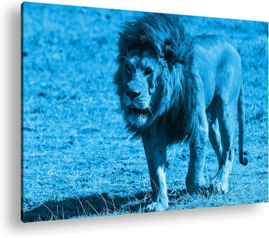 deyoli einsam umherstreifender Löwe Format 80x60 Effekt: Monocrome Blau als Leinwandbild, Motiv fert