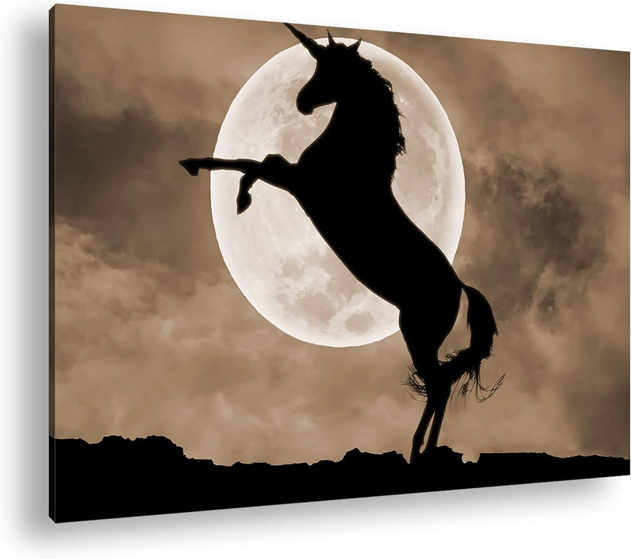 deyoli Einhorn im Mondschein Format: 80x60 Effekt: Sepia als Leinwandbild, Motiv fertig gerahmt auf