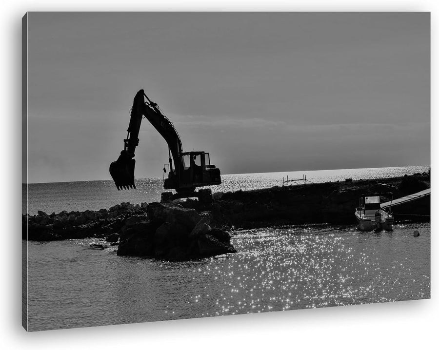 deyoli einsamer Bagger am Ufer Format: 80x60 Effekt: Schwarz/Weiss als Leinwand, Motiv fertig gerahm