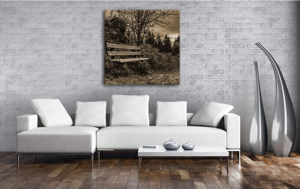 deyoli einsame Bank am Waldrand Format: 60x60 Effekt: Sepia als Leinwandbild, Motiv fertig gerahmt a
