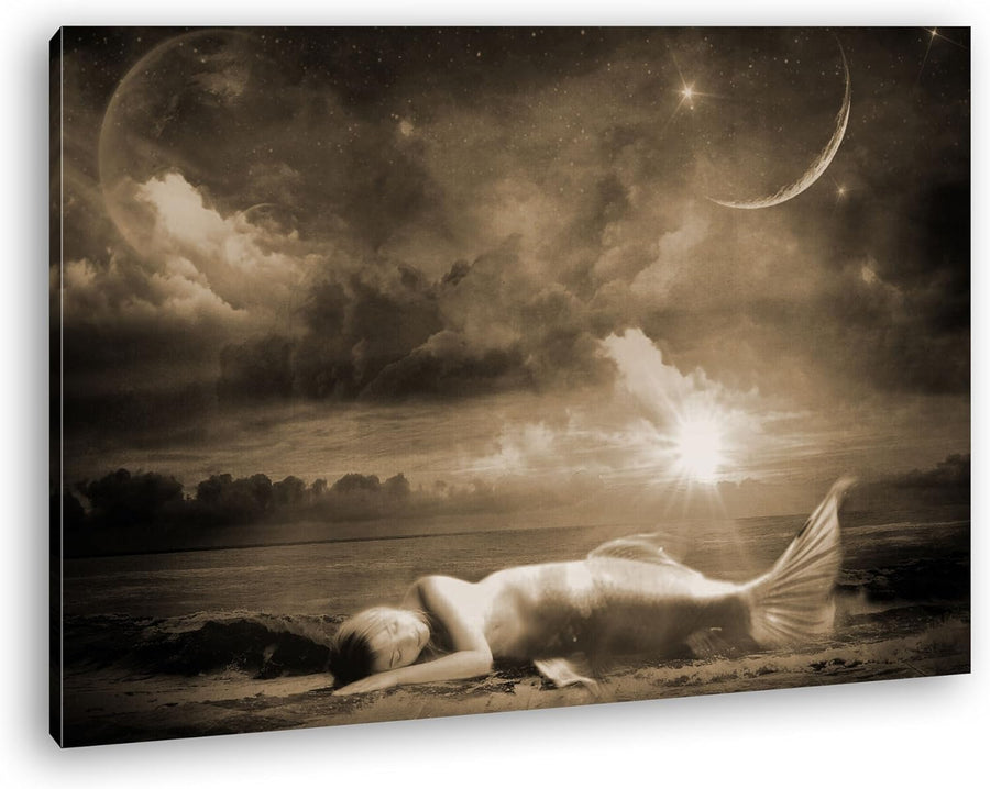 deyoli einsame Meerjungfrau Format: 80x60 Effekt: Sepia als Leinwand, Motiv fertig gerahmt auf Echth