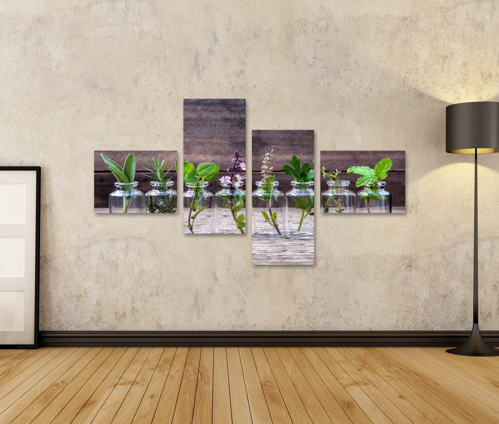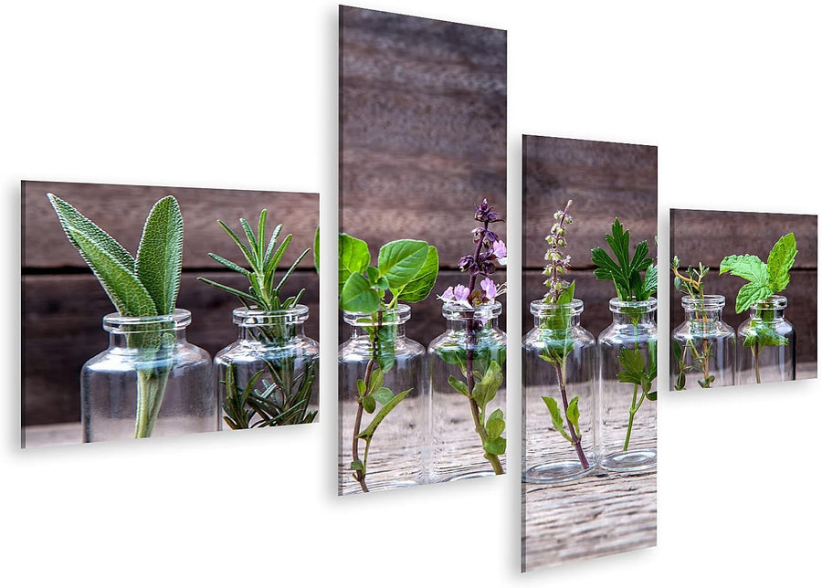 islandburner Bild auf Leinwand Flaschen Mit Kräutern Basilikum Rosmarin Oregano Salbei Petersilie Th