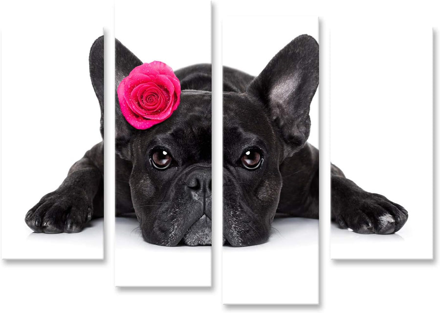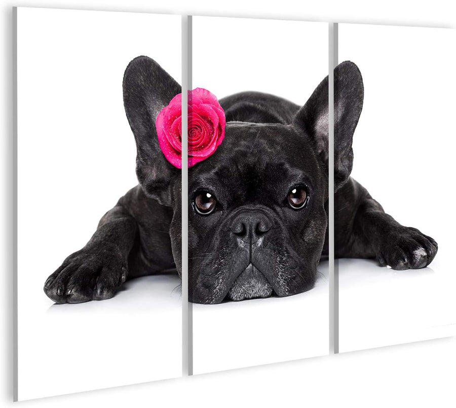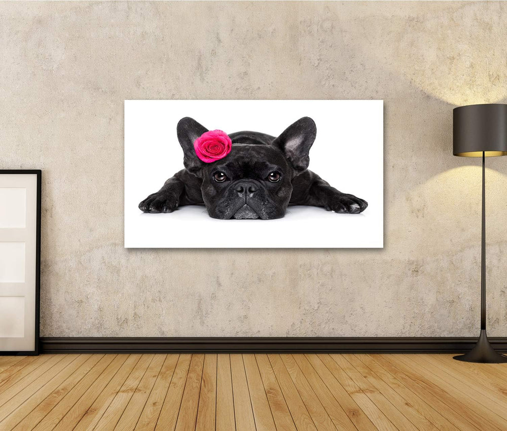 islandburner Bild auf Leinwand Französische Bulldogge Rose Bilder Wandbilder Poster, 80L x 40B cm