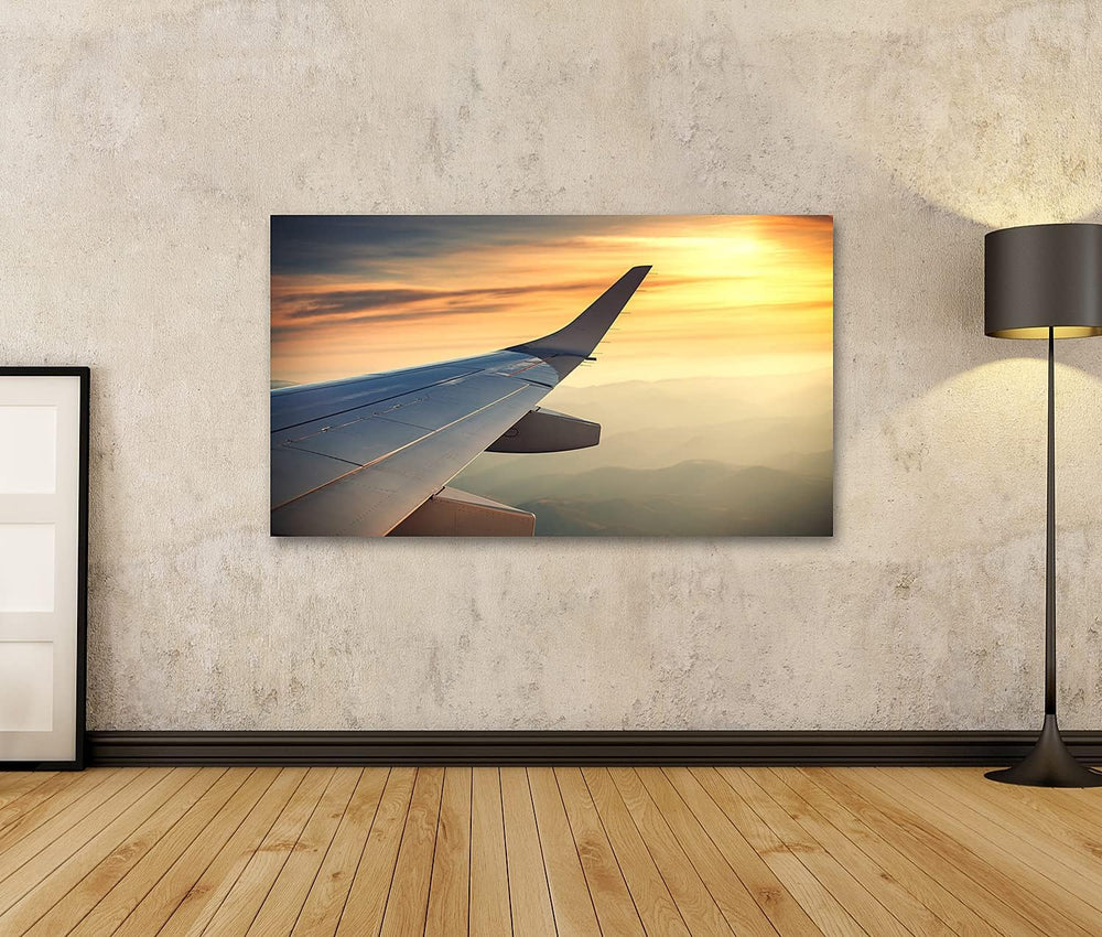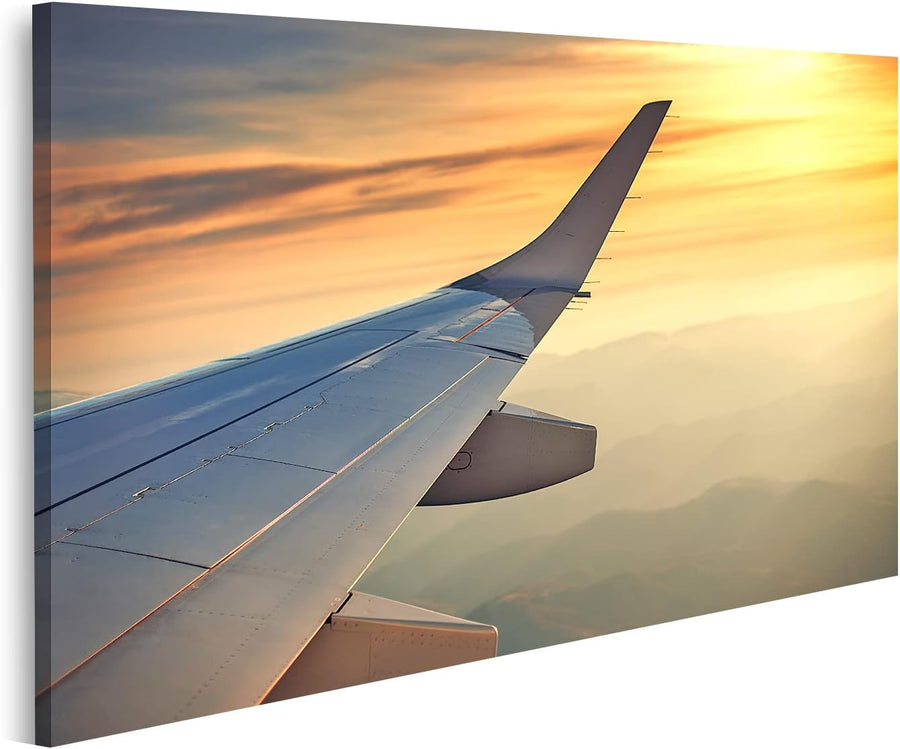 islandburner Bild auf Leinwand Flugzeugflügel Sonnenuntergang Über Den Wolken Bilder Wandbilder Post