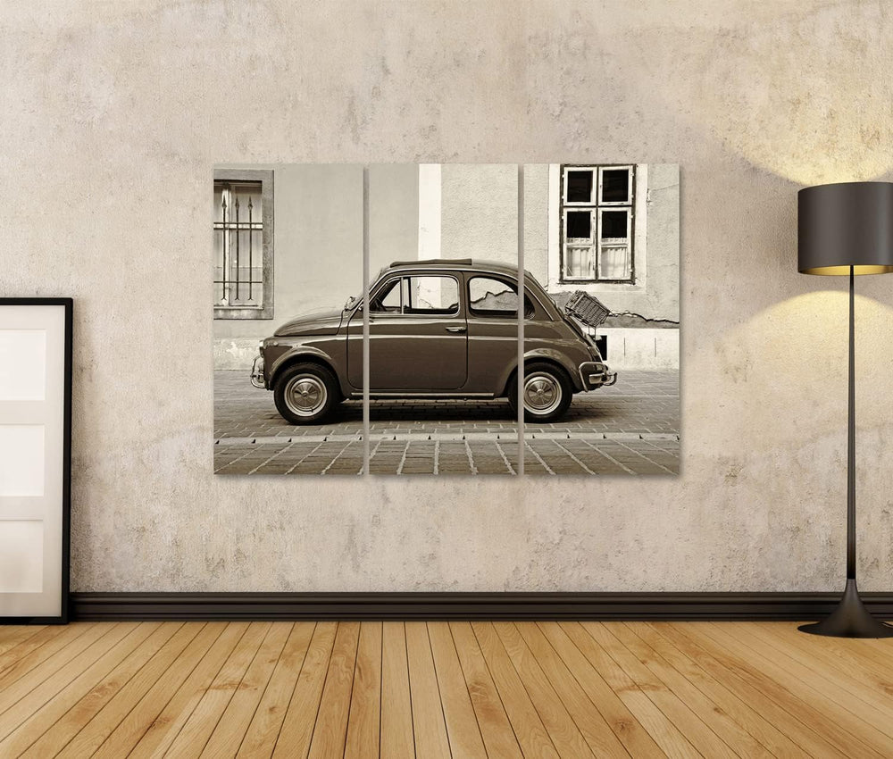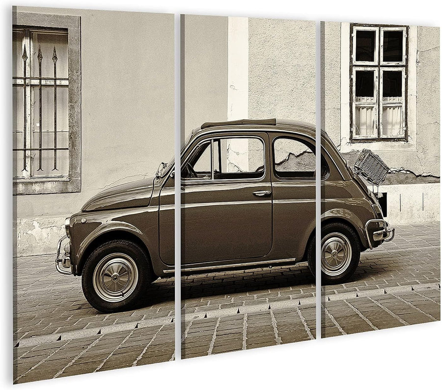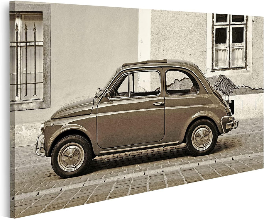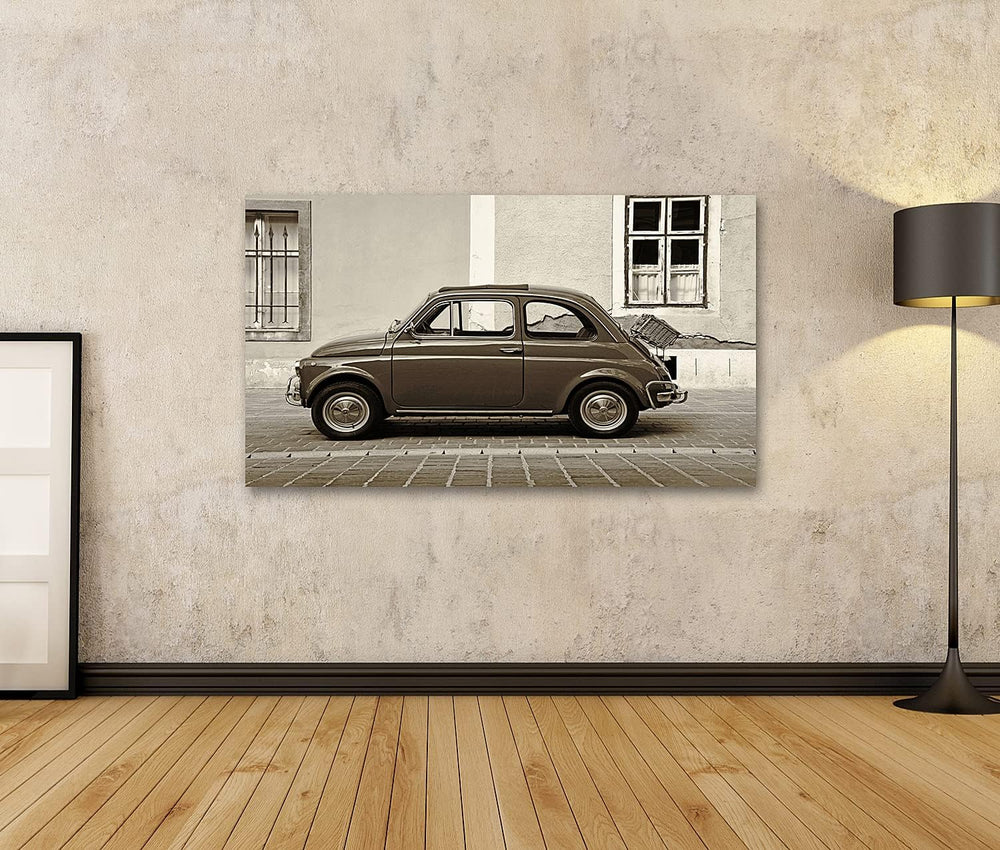 islandburner Bild auf Leinwand Fiat 500 Vintage Retro Style Sepia Finish Bilder Wandbilder Poster Le
