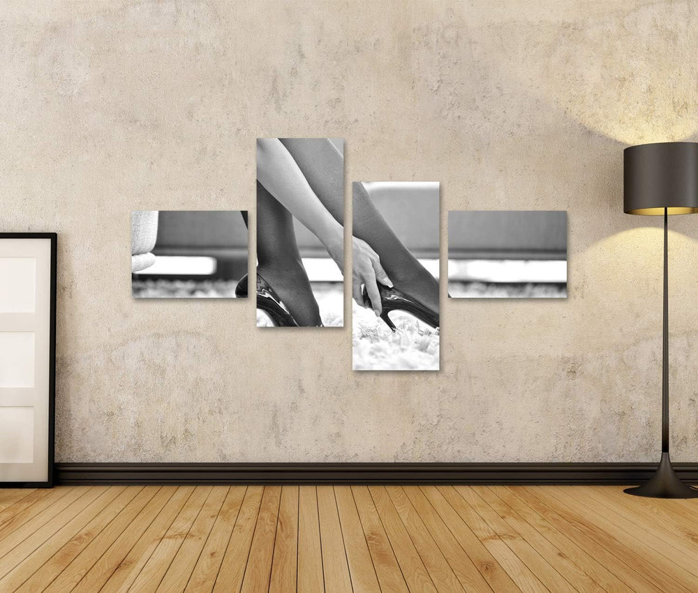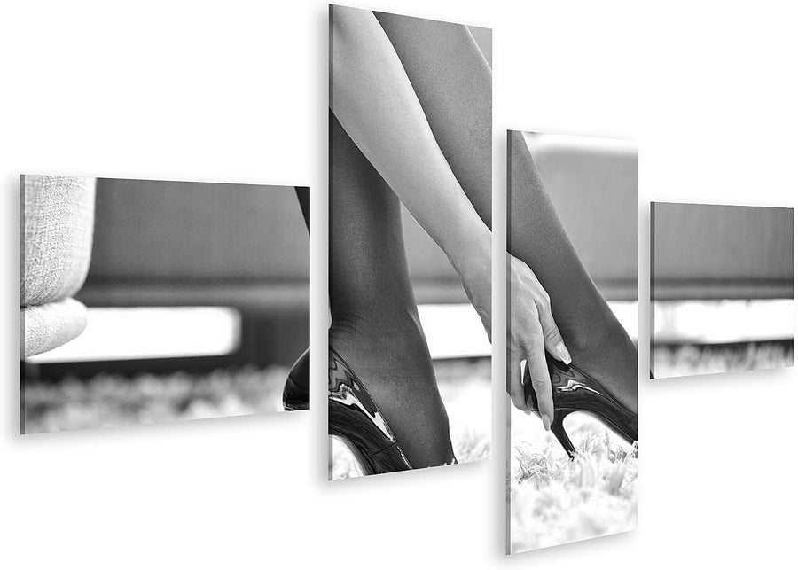 islandburner Bild auf Leinwand Frau In Unterwäsche Berührende High Heels Schwarz Weiss Bilder Wandbi