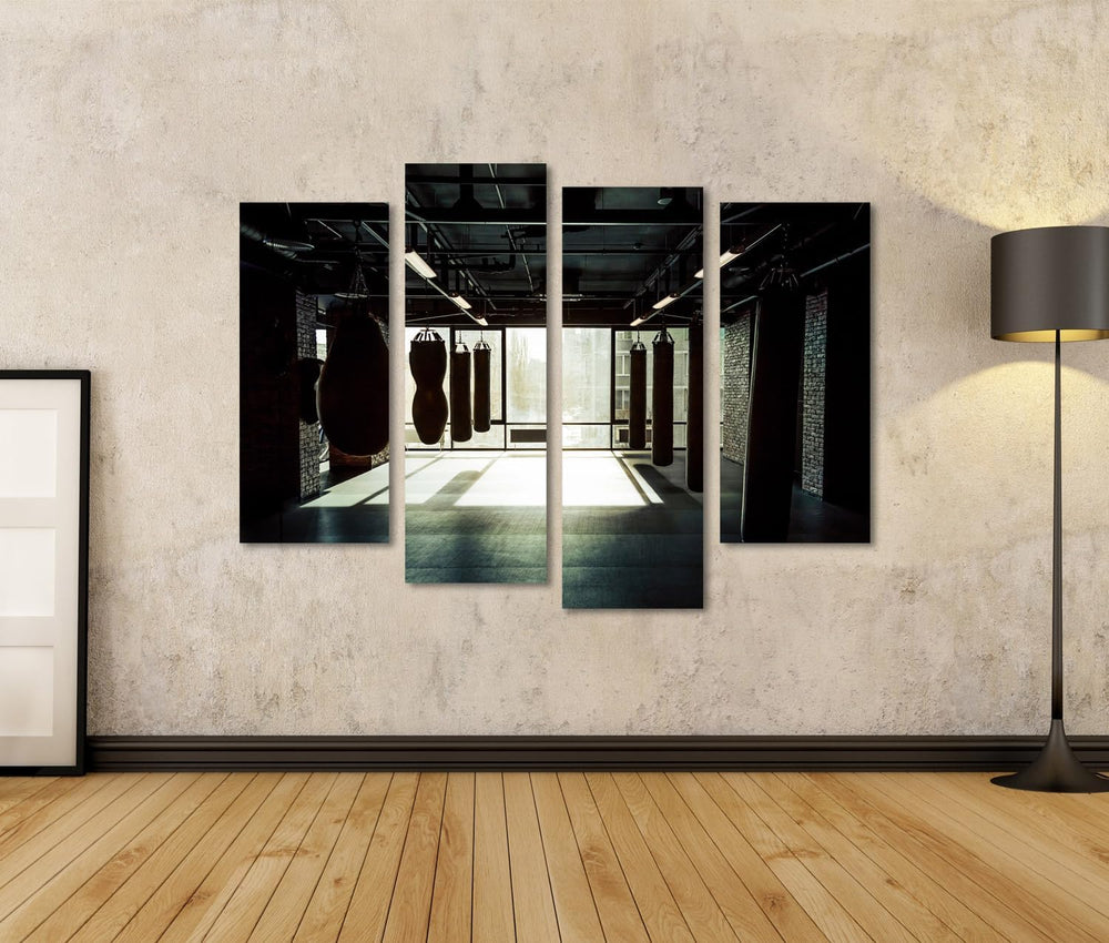 islandburner Bild auf Leinwand Fitnessstudio Mit Boxsäcken Dunkel Bilder Wandbilder Poster Leinwand