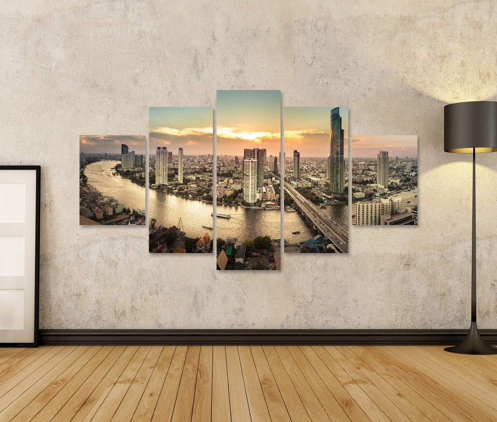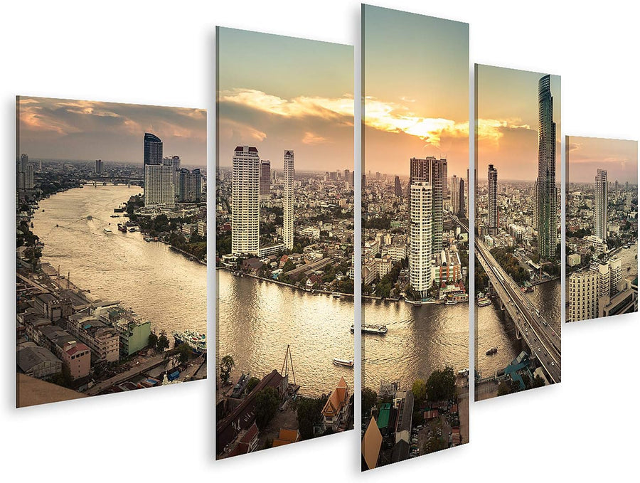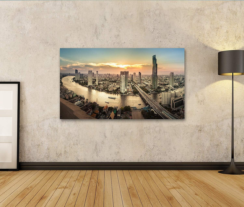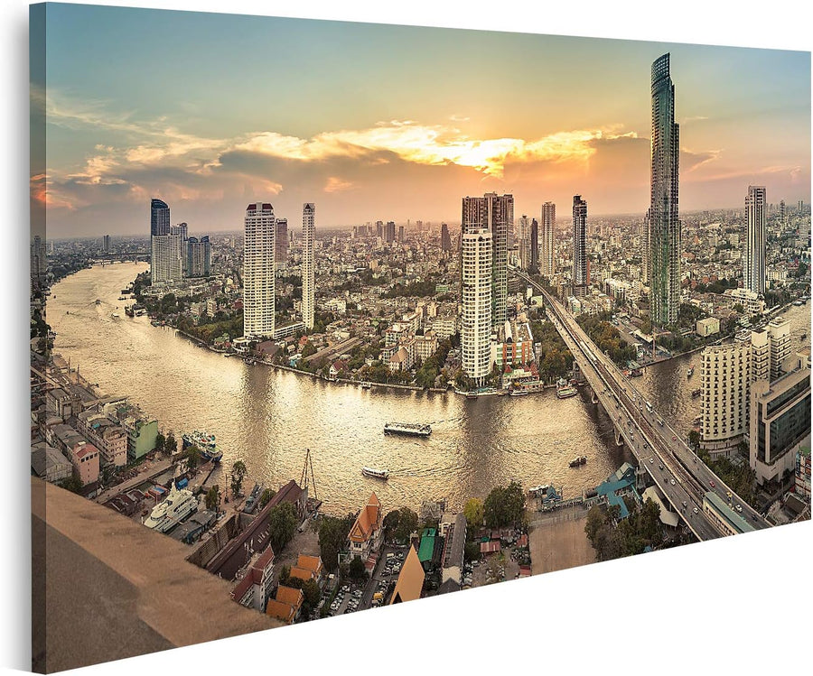 islandburner Bild auf Leinwand Flusslandschaft In Bangkok Stadtpanorama Bilder Wandbilder Poster Lei