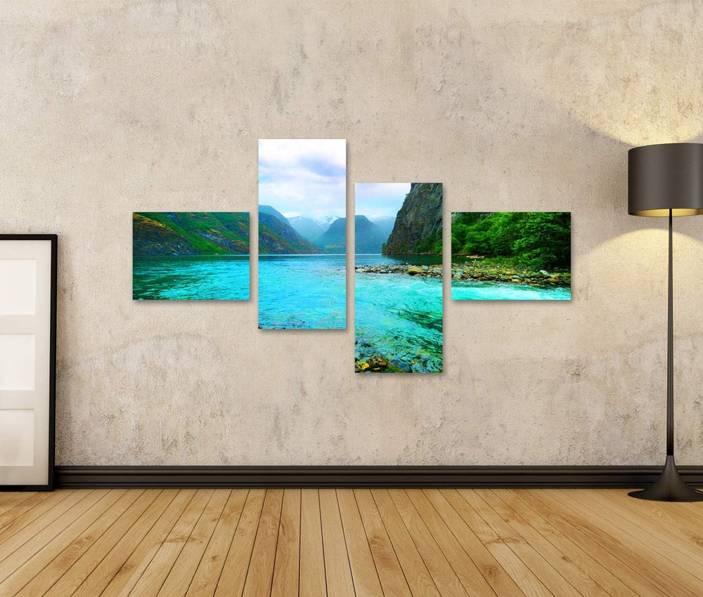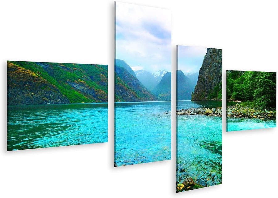islandburner Bild auf Leinwand Fjord Fluss Norwegen Bilder Wandbilder Poster Leinwand 150x80cm - 4 T