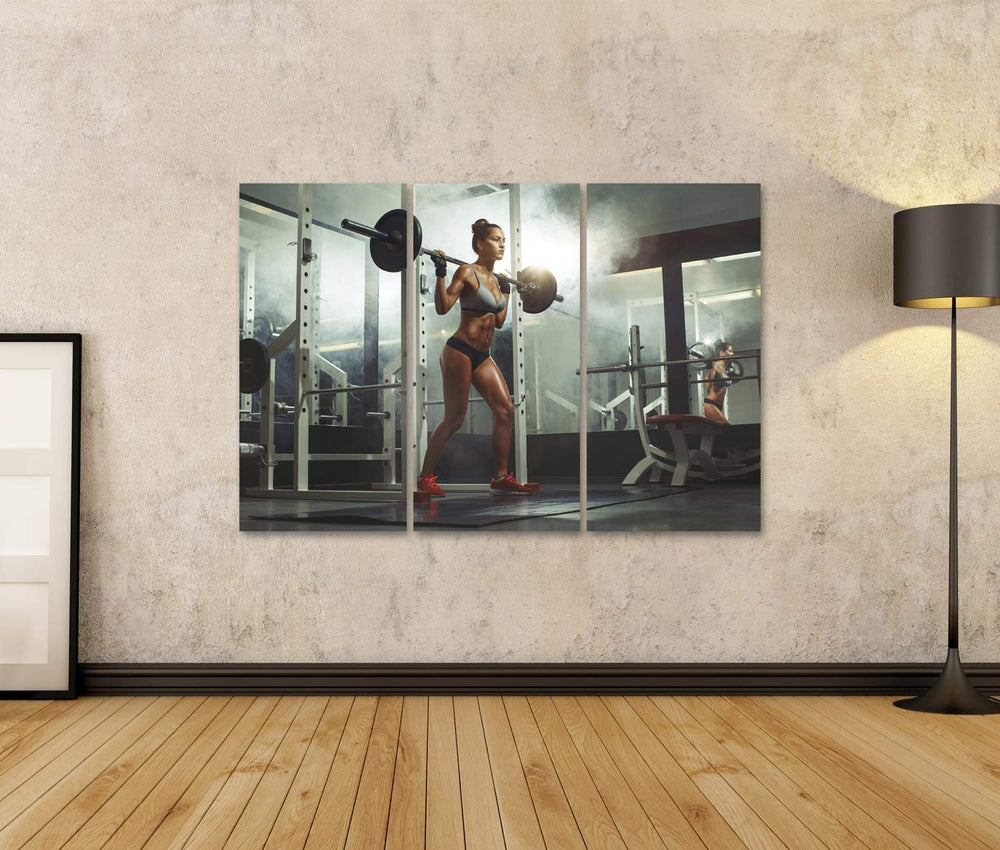islandburner Bild auf Leinwand Fitness Sexy Girl Gym Doing Squat Smoke Hintergrund Bodybuilder Bilde