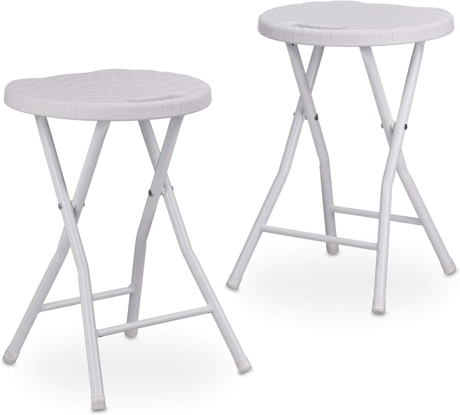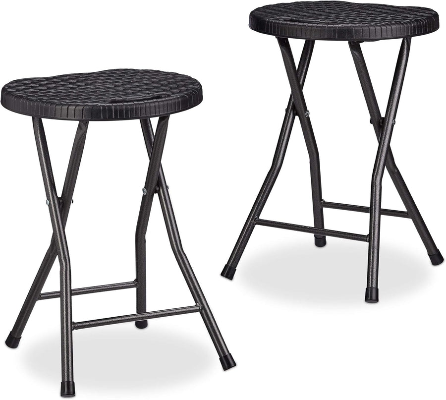 Relaxdays Klapphocker BASTIAN rund, 2 Stk. Faltbar, Kunststoff, Rattanoptik, Wetterfest HxBxT: 45 x