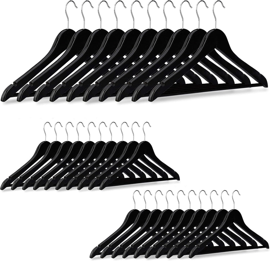 Relaxdays Kleiderbügel Holz 30er Set, Hosenstange, Röcke, Kleider, Jacken, Hemdenbügel, Haken 360° d