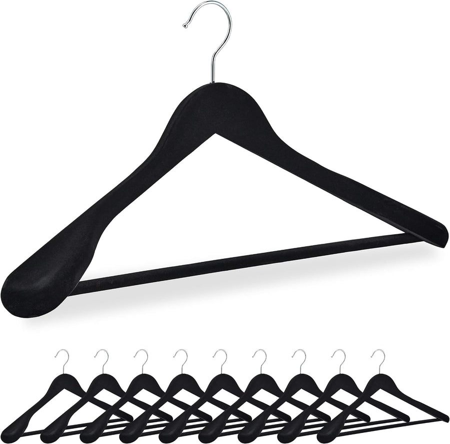 Relaxdays Kleiderbügel Samt, 10er Set, breite Schulter, Bügel mit Hosensteg, 360° drehbarer Haken, A
