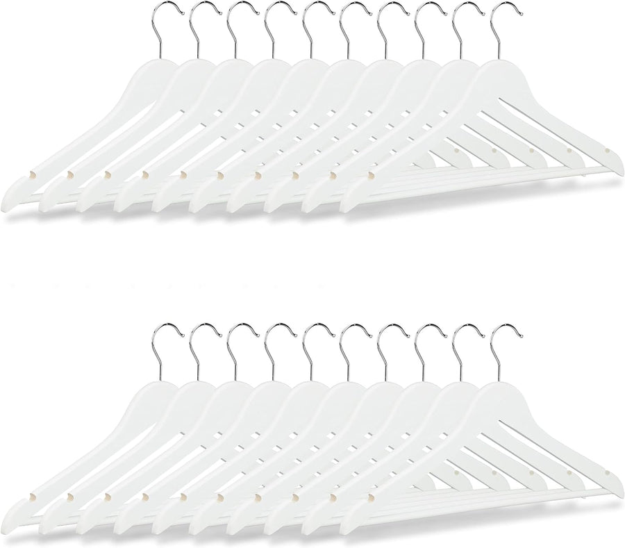 Relaxdays Kleiderbügel Set Holz, 20er Pack Garderobenbügel, Hemden & Hosen, 360° drehbar, Bügel HxB