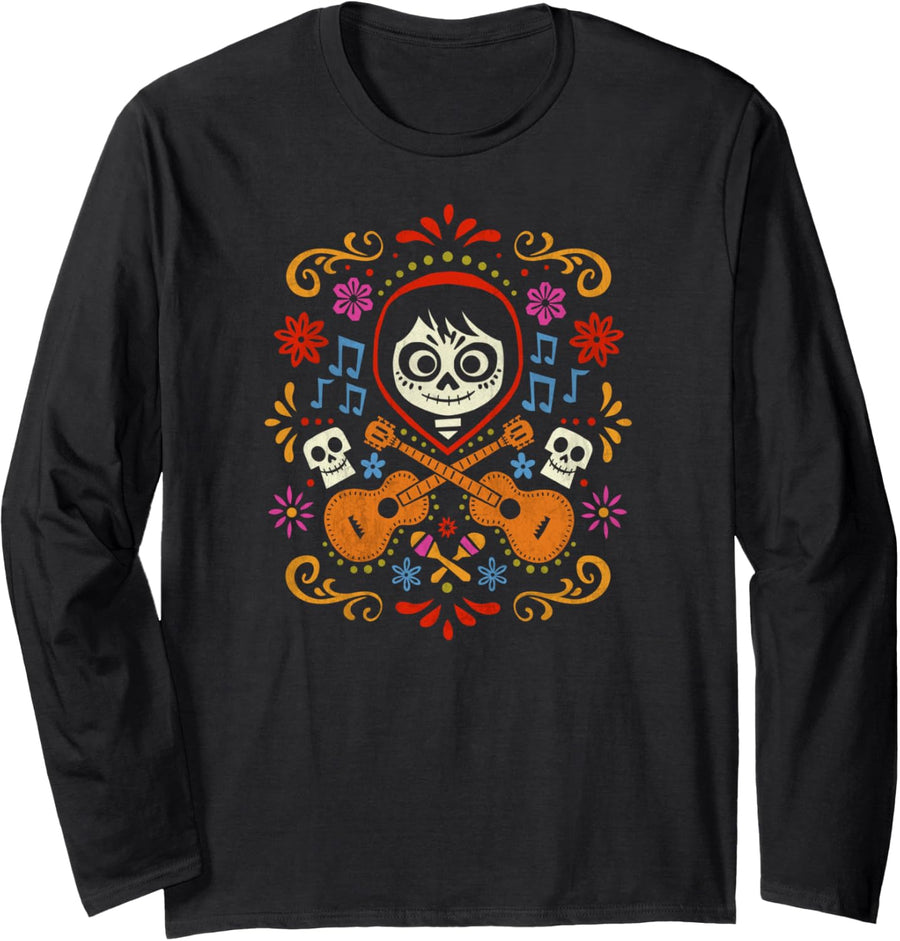 Disney Pixar Coco Sugar Skull Characters Guitar Langarmshirt