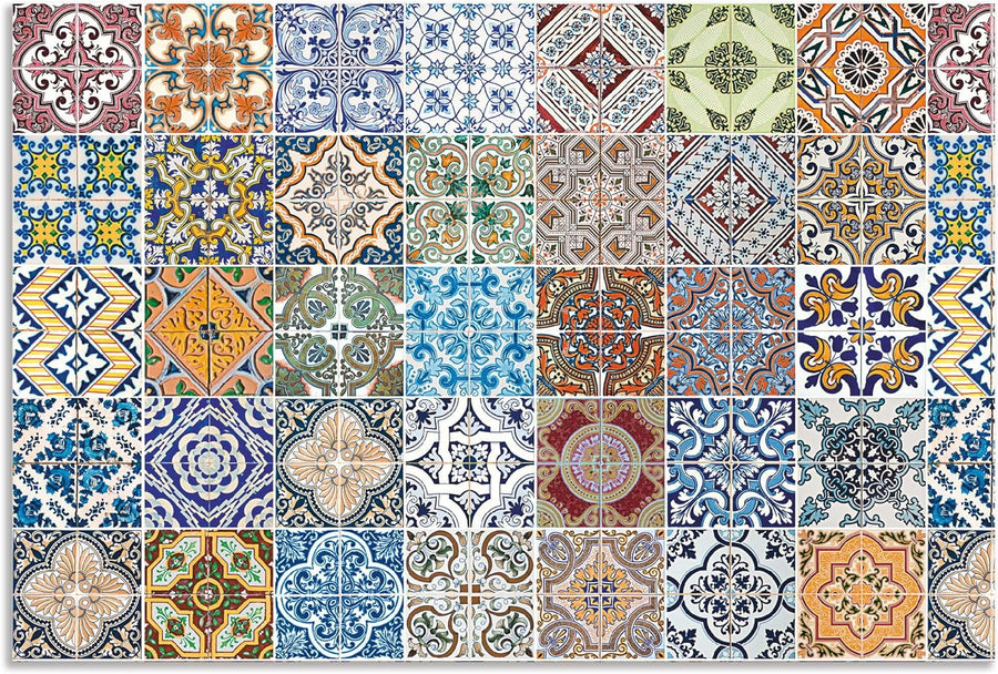ARTland Spritzschutz Küche aus Alu für Herd Spüle 90x60 cm (BxH) Küchenrückwand mit Motiv Fliesenmus